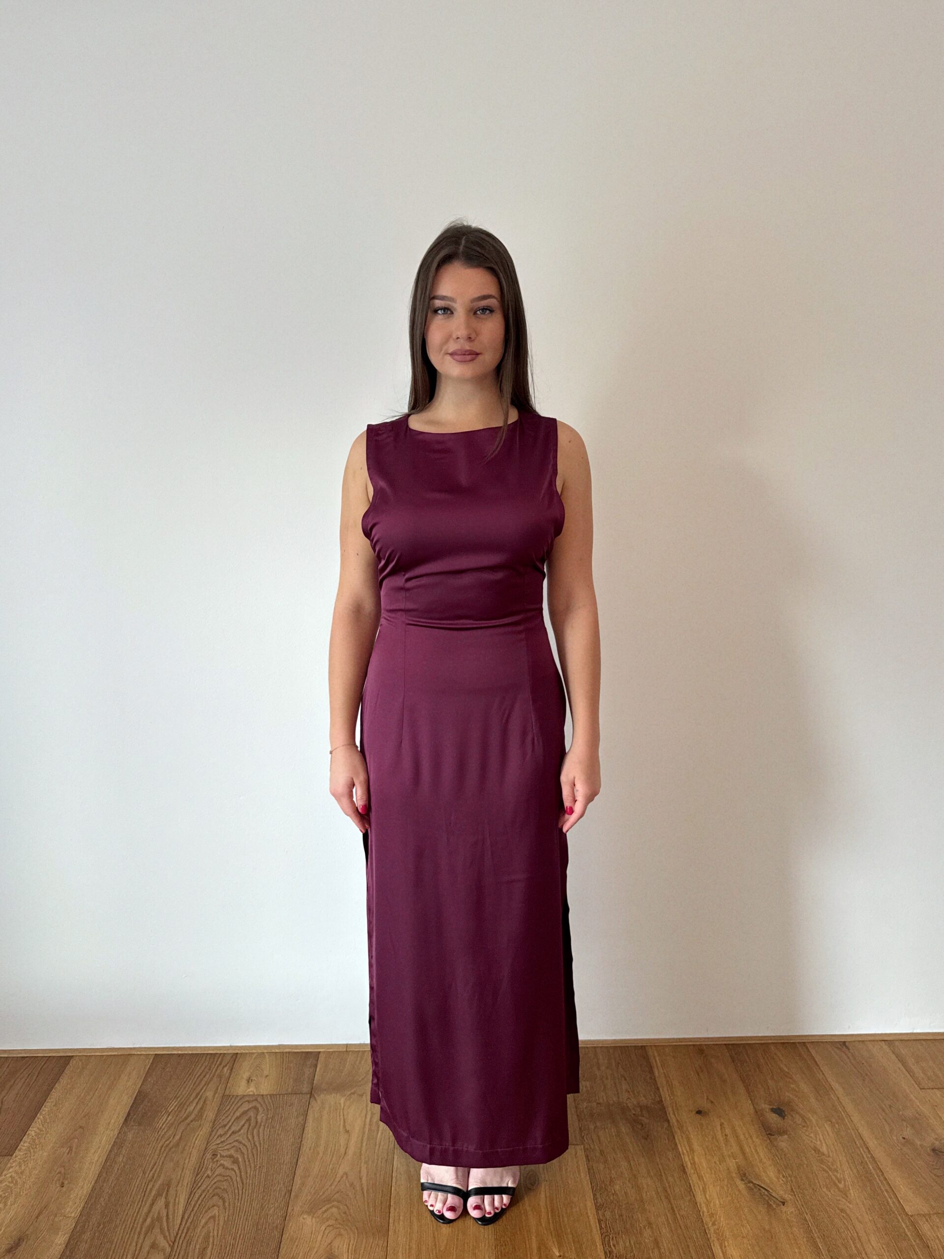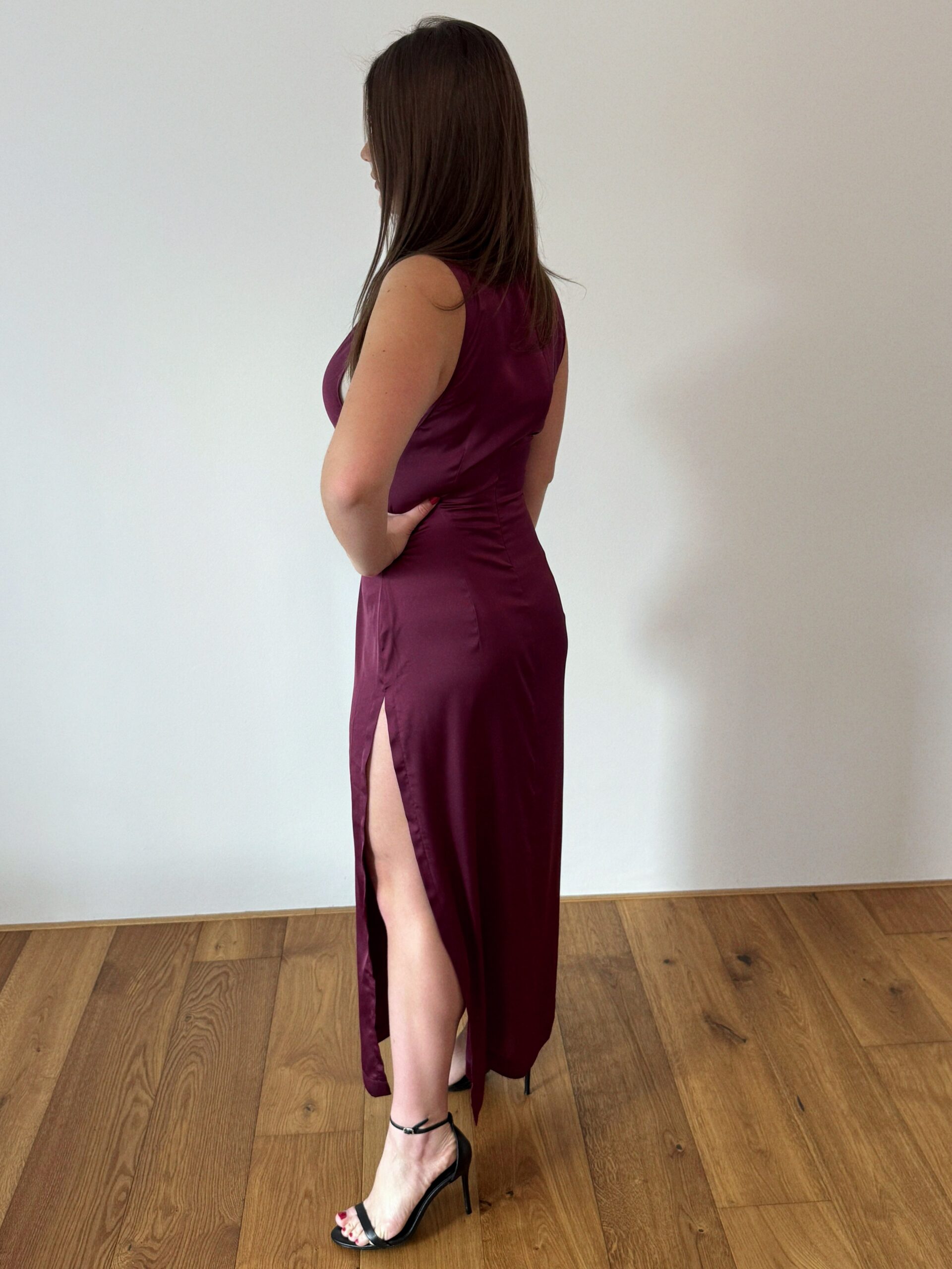 Elegant Evening dress made of vegan silk. It’s waistband beautifully accentuates the female silhouette, while the armholes add a provocative but never vulgar touch. The fabric gracefully covers what should be covered, making it perfect for evenings that are meant to mean more.